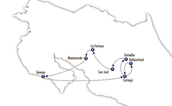 San José - Puerto Viejo - Sarapiqui - Vulkan Arenal – Monteverde Nebelwaldreservat – Samara Strand - San Jose