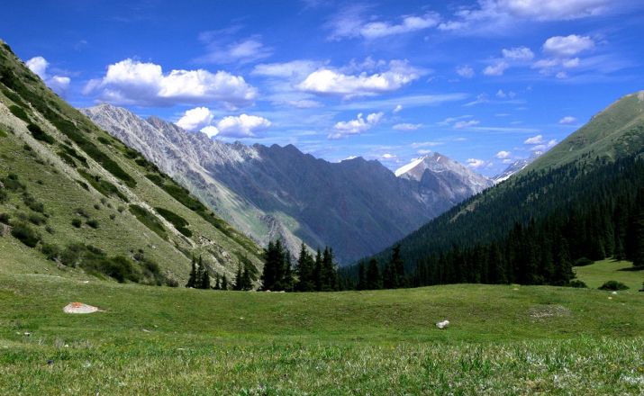 Der See von Sary Chelek ist einer der schönsten Seen auf 1800 Meter über dem Meeresspiegel. Es wurde wegen eines starken Erdbebens geschaffen. Das Tal hat auch noch sechs kleine Seen und ein weites Flussnetz. Hier finden Sie die majestätischen Berge mit schneebedeckten Gipfeln, die den Himmel berühren.