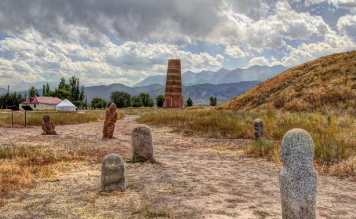 Dann, auf dem Weg zum Burana-Turm, ist es ein altes Minarett im Chuy-Tal im Norden von Kirgisistan. Es ist etwa 80 km von der Hauptstadt Bischkek entfernt, in der Nähe der Stadt Tokmok. Der Turm mit Grabmonumenten, Erdwällen, Schlossresten und drei Mausoleen - das ist alles, was aus der alten Stadt Balasagyn stammt, die Ende des 9. Jahrhunderts von den Karakhaniden gegründet wurde.