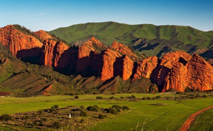 Besonders romantisch wirkt der Felsen "Broken Heart" am Eingang zur Schlucht. Jety Oguz ist auch berühmt für den Ort namens Kok-Jayyk, Tal der Blumen voller Mohnblumen im Frühjahr. Im oberen Teil von Jety Oguz gibt es auch Bergseen und Wasserfälle.