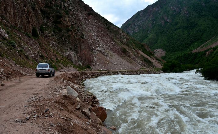 Später wechseln wir die Autobahn auf die Straße; Unsere Straße führt entlang des Flusses Kokemeren (eine der anspruchsvollsten Rafting-Strecken des Landes).