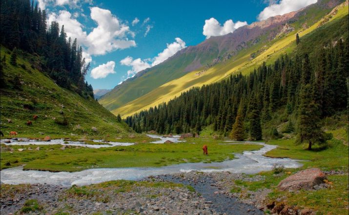 Neue Abenteuer warten auf uns! Nach dem Frühstück machen wir uns auf den Weg in das Kichi Naryn Tal, wo der Naryn Fluss, der wichtigste Fluss Kirgisistans, entspringt. Wir werden unterwegs zu Mittag essen. Abends werden wir Zelte aufschlagen und am Flussufer zu Abend essen.