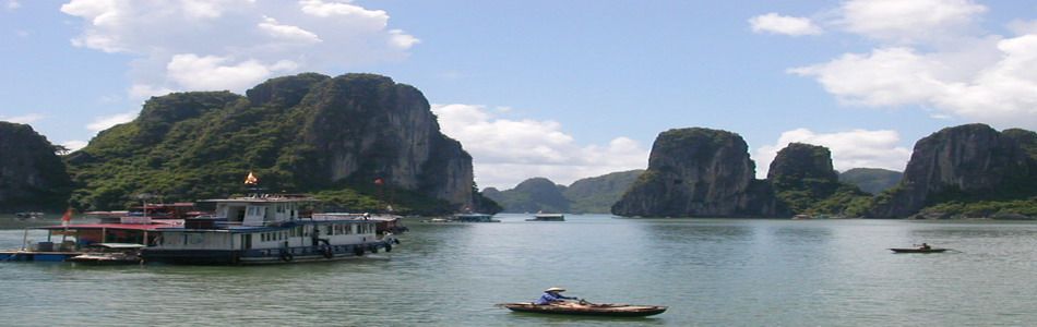 Ein eindrucksvolles Naturschauspiel erwartet Sie in der einzigartigen Halongbucht. Am besten an Bord einer traditionellen Dschunke taucht man hier ein in eine bizarre Welt unzähliger Kalkfelsen, die zum Teil mehrere Hundert Meter aus dem Wasser ragen, sowie kleiner, zumeist unbewohnten Inseln mit Höhlen und Grotten.