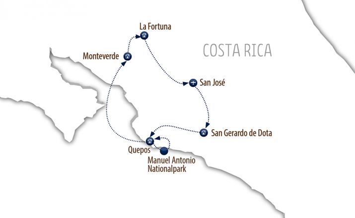 San José - Puerto Viejo - Sarapiqui - Vulkan Arenal – Monteverde Nebelwaldreservat – Samara Strand - San Jose