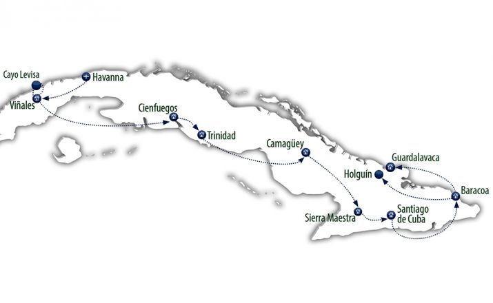 Eine abwechslungsreiche Reise für Gäste, die sich etwas mehr Zeit nehmen wollen, um die ganze Insel mit all ihren Facetten kennen zu lernen. Die Tour führt Sie zu den schönsten Landschaften des Viñales-Tals mit seinen imposanten Mogotes, in die wilde Sierra Escambray und zu den tropischen Bergen von Baracoa. Wandeln Sie in Havanna und Santa Clara auf den Spuren der Revolution und genießen Sie in Trinidad und Santiago koloniales Flair und kubanische Rhythmen. mehr